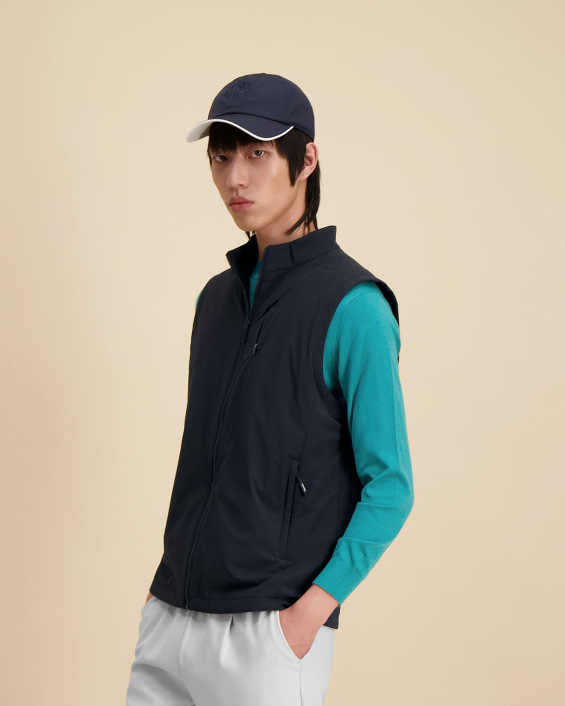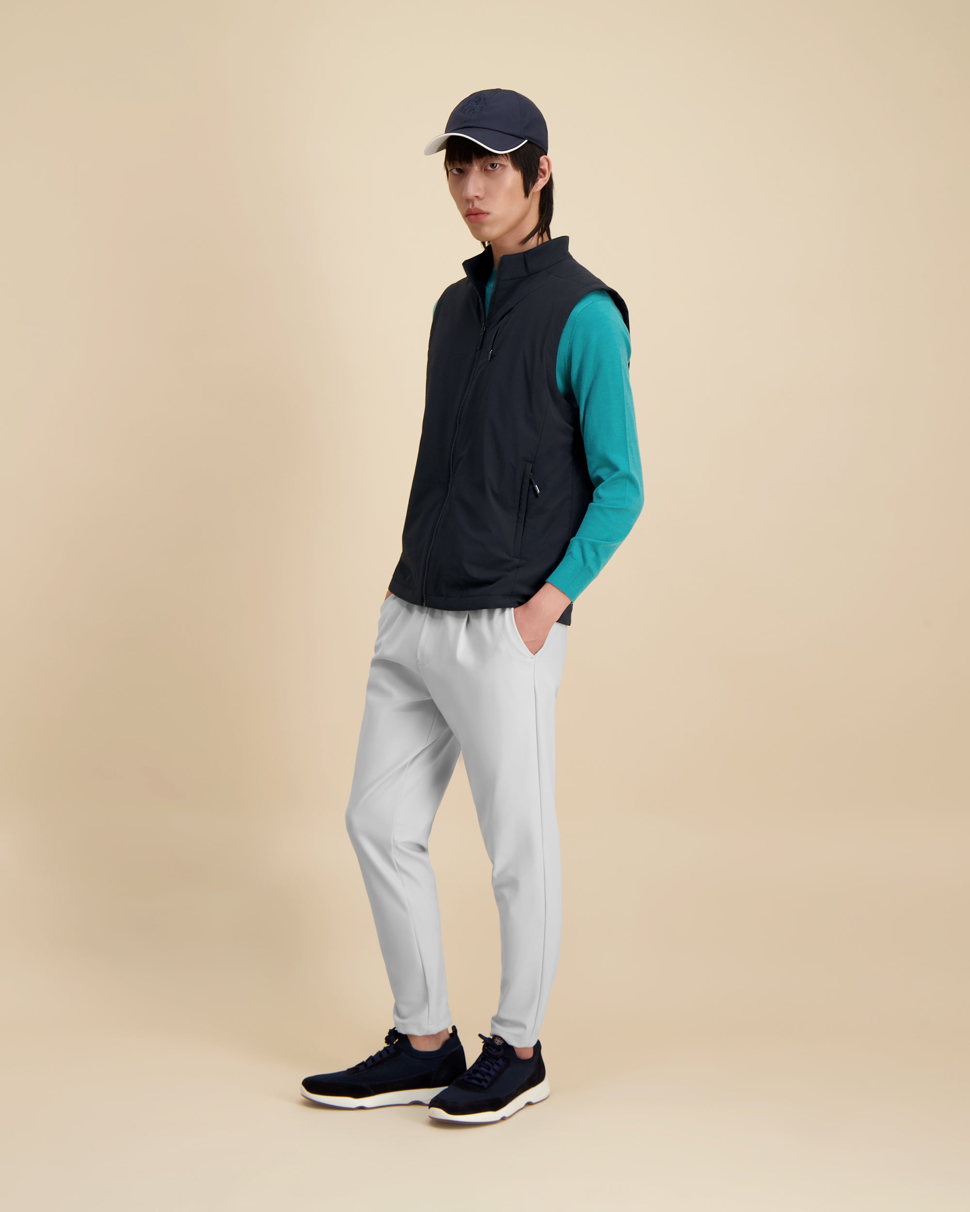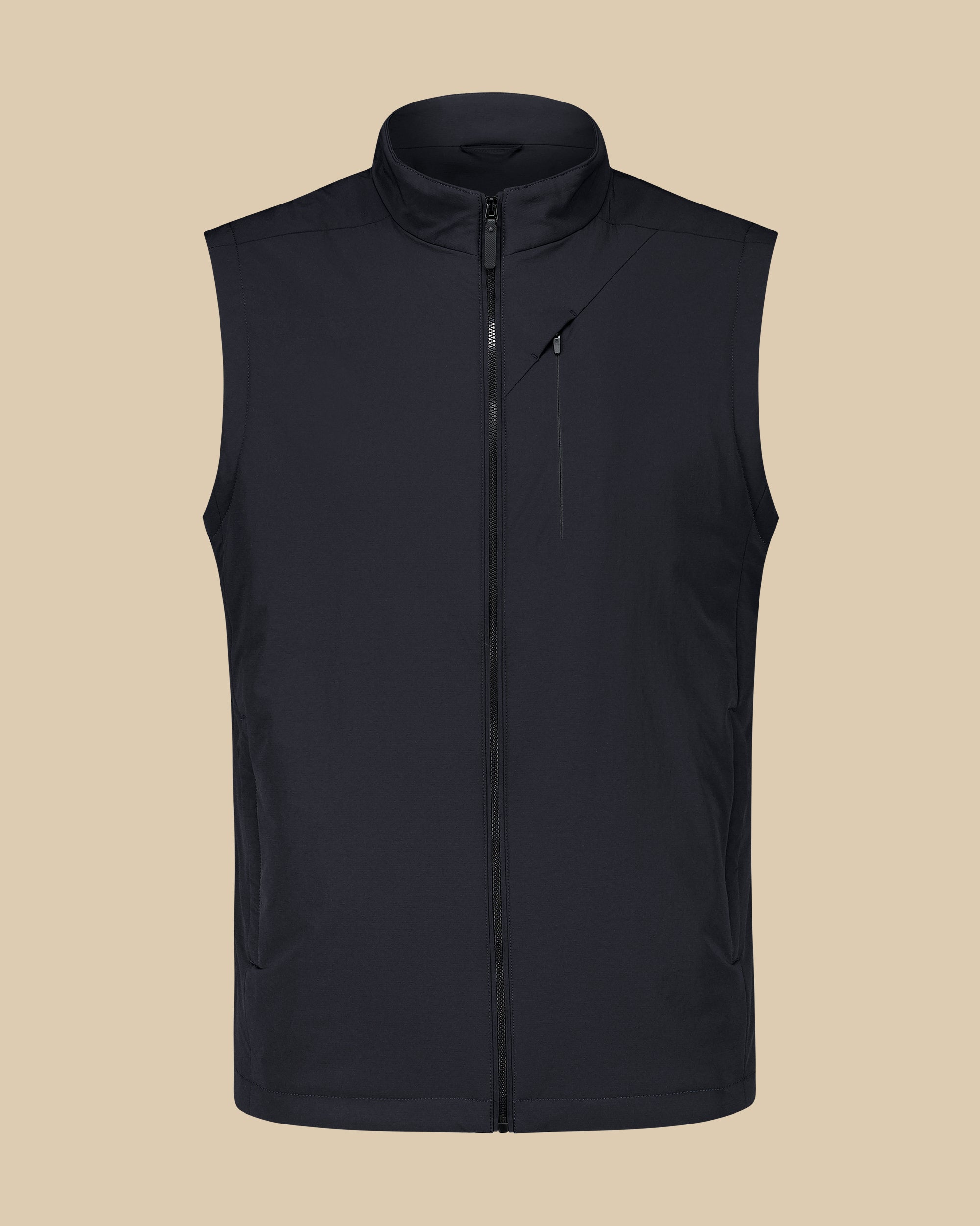 Dit gilet is moeiteloos en eigentijds en voegt een subtiele, moderne esthetiek toe aan je garderobe, terwijl het ademend comfort en een verfijnde structuur biedt.
