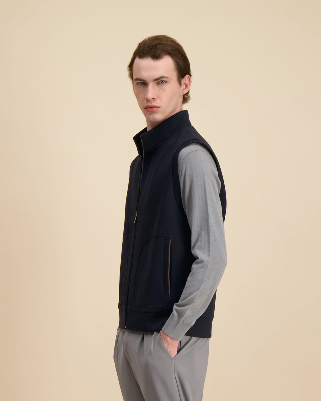 Moeiteloos maar toch verfijnd, het Alpino Gilet voegt ingetogen elegantie en een tactiele diepte toe aan je outfit, waardoor het een onmisbaar kledingstuk met een verfijnd karakter wordt.