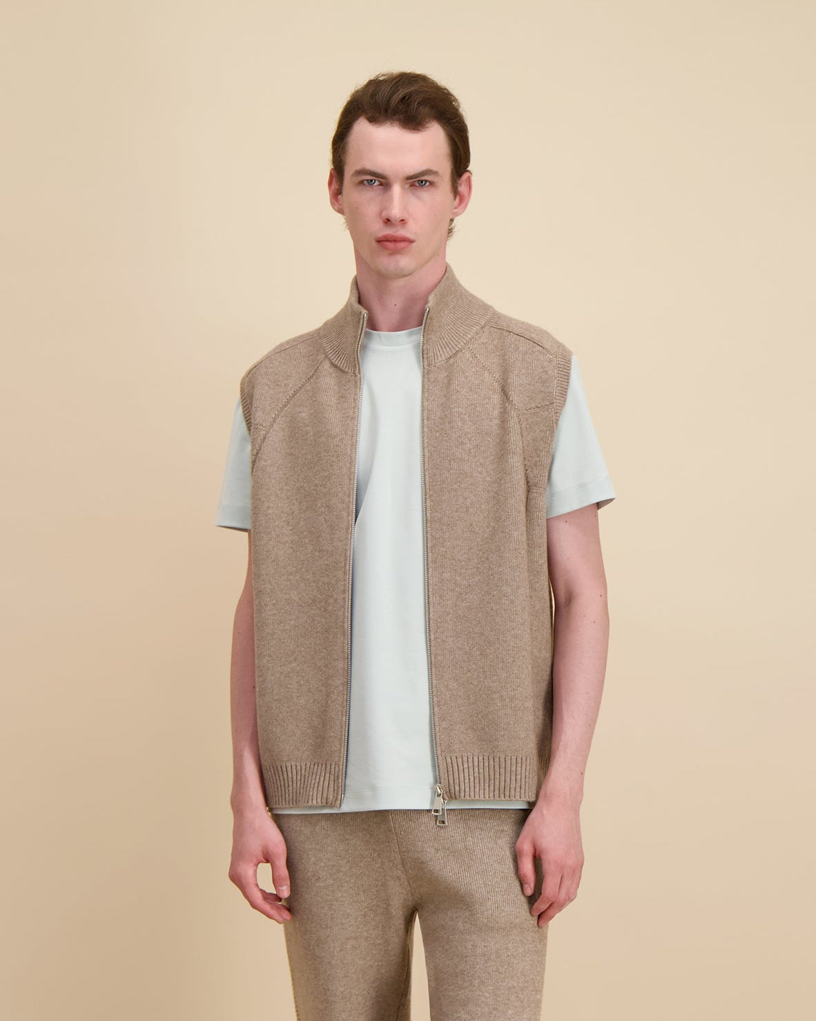 • Mouwloos ontwerp met strakke, minimalistische lijnen; comfortabele laagjes met een moderne structuur