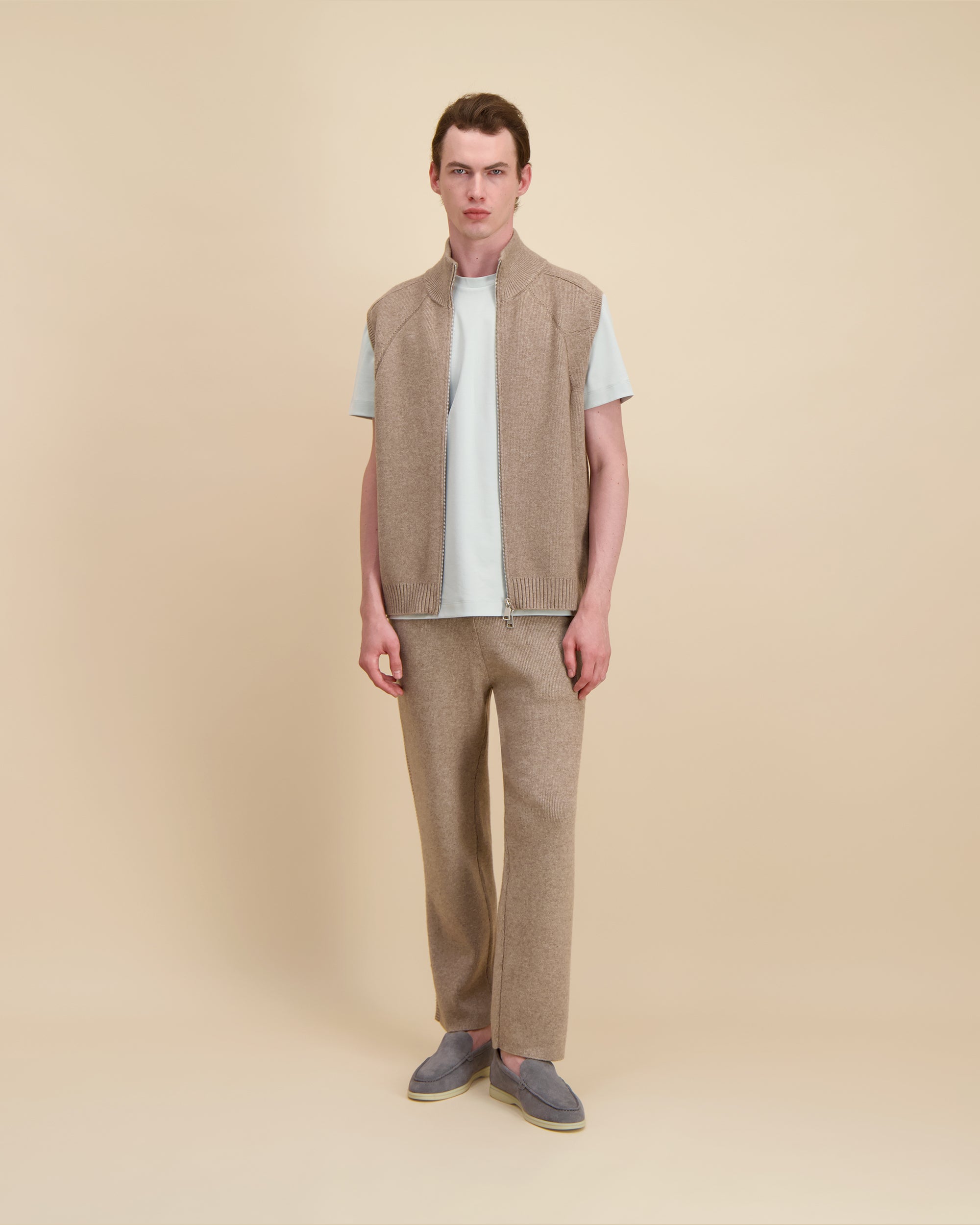Gemakkelijk te dragen als los kledingstuk over een T-shirt of trui, of te combineren met het Calmiero wollen vest en de broek voor een complete, gecoördineerde set.