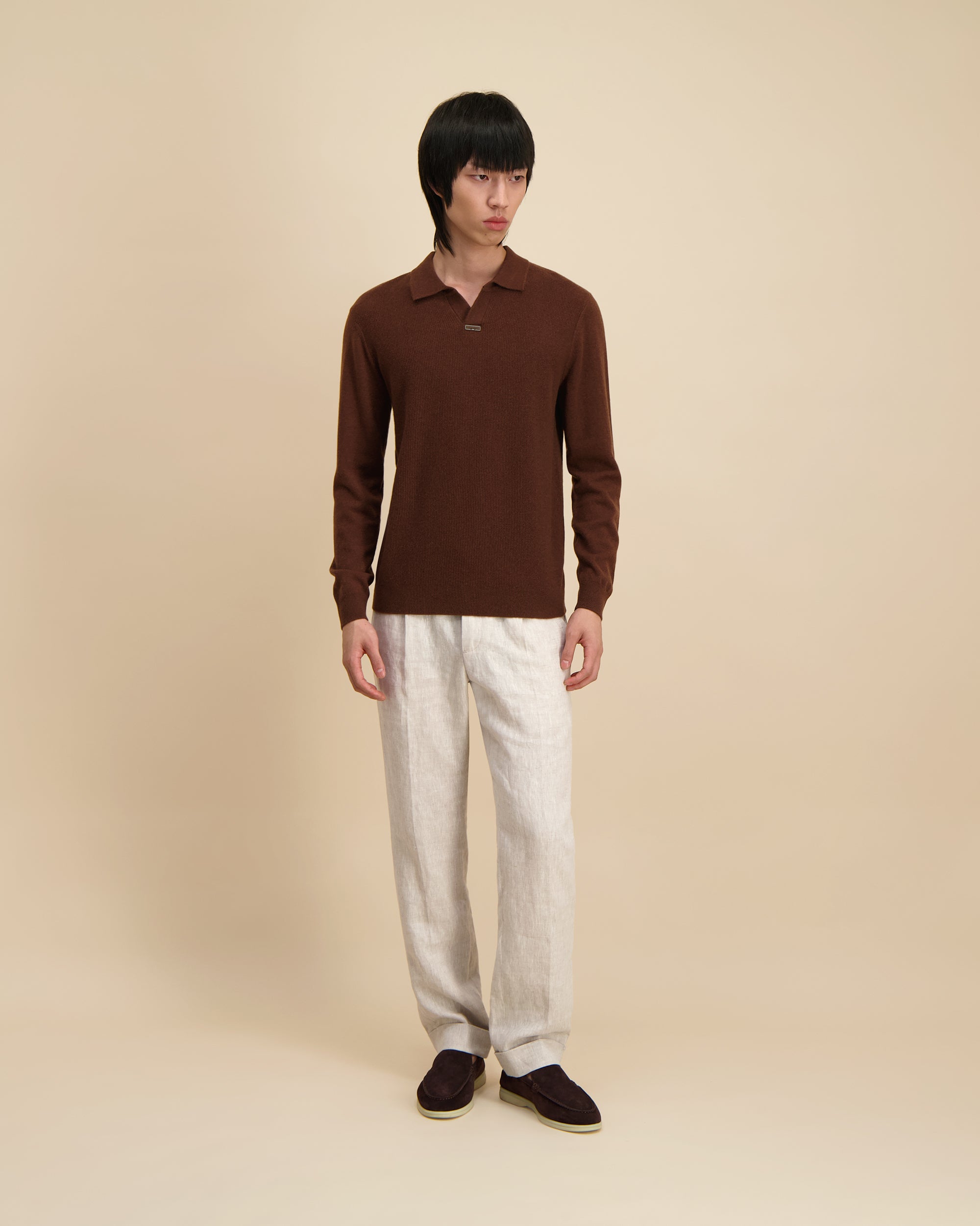 De Slip-On Longsleeve Polo is gemaakt van een hoogwaardige kasjmierblend en biedt lichtgewicht warmte en een soepel, luxueus gevoel. Het strakke ontwerp en de getailleerde pasvorm geven een ingetogen elegantie aan moderne alledaagse kleding.
