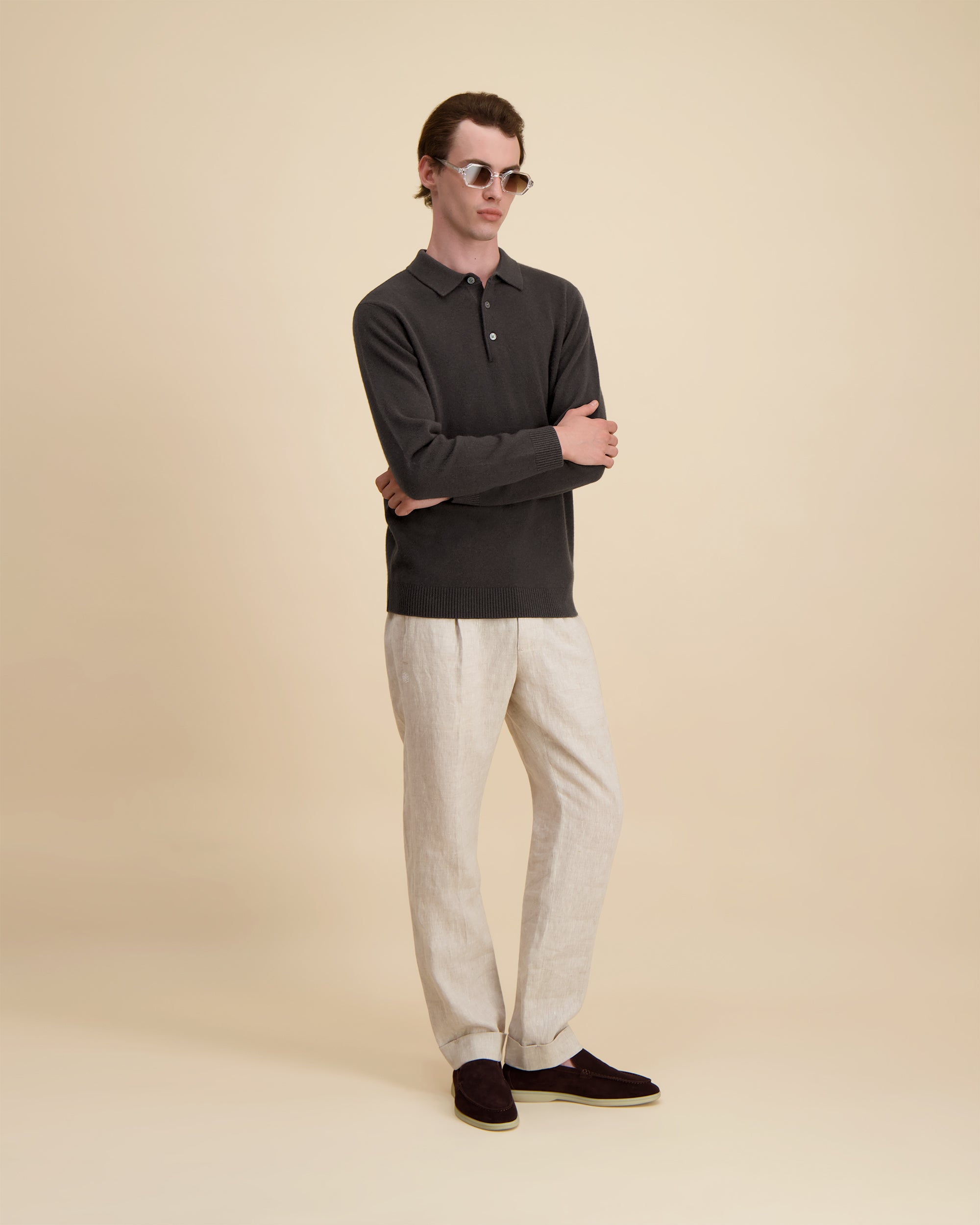 De Cashmere® Polo in espresso roast combineert de luxe van zachte kasjmier met een tijdloos polodesign. De ademende gebreide stof en de verfijnde kraagvorm maken hem ideaal voor casual laagjes of elegante looks, en bieden comfort zonder compromissen.