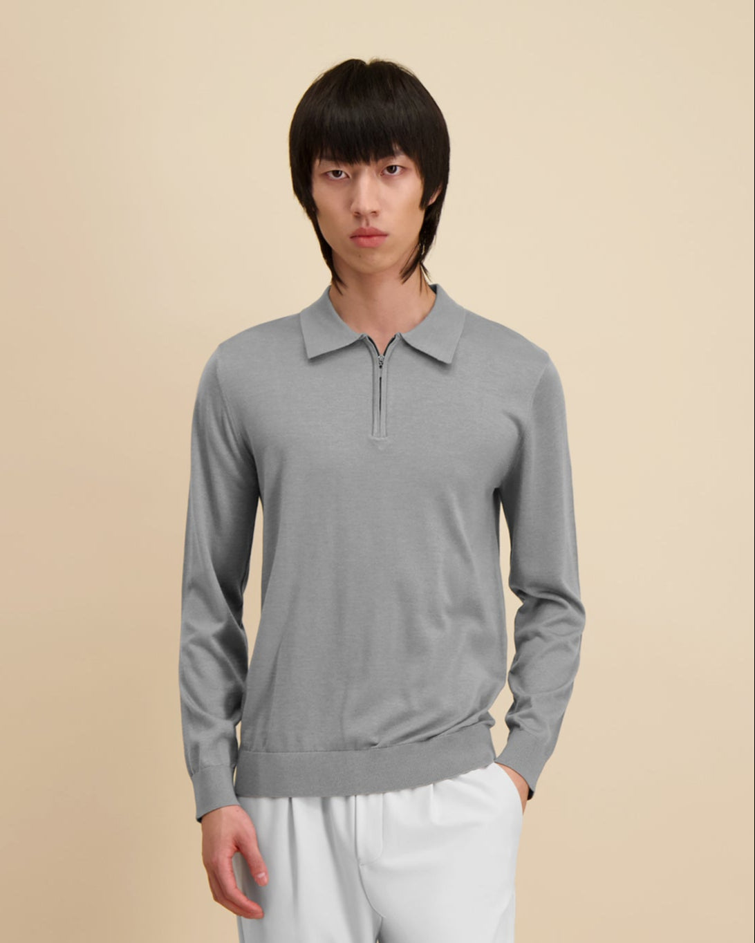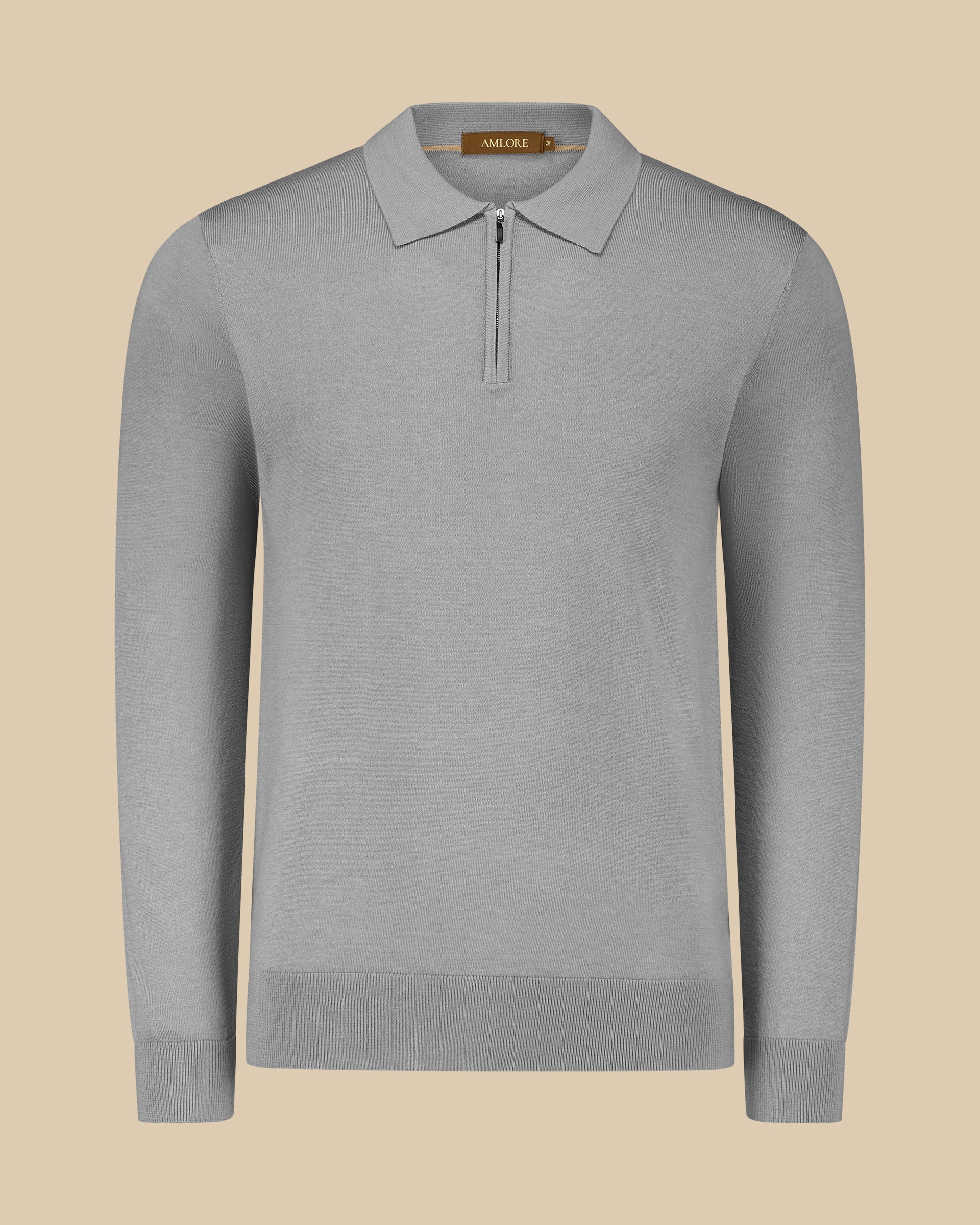 Woolline Zipped Polo Grey Whisper
